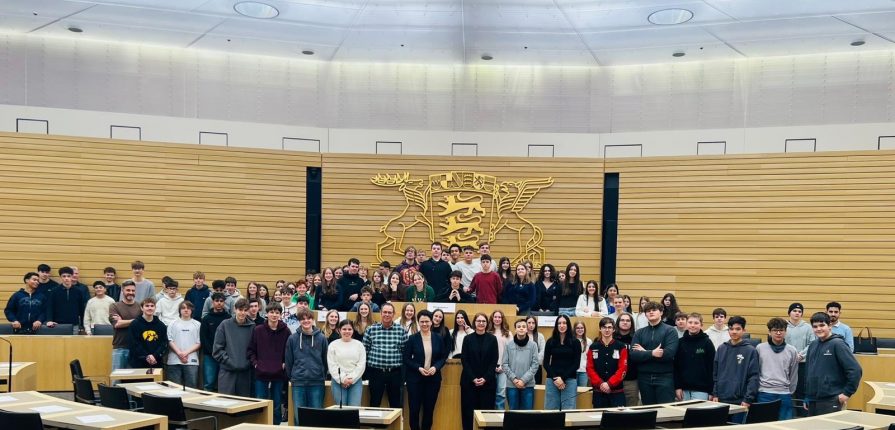 Unsere 8./9. Klässler waren am Dienstag im Landtag zu Gast, wo sie im Gespräch mit den beiden Landtagsabgeordneten Sandra Boser (Grüne) und Marion Gentges (CDU) ihre Fragen stellen durften.