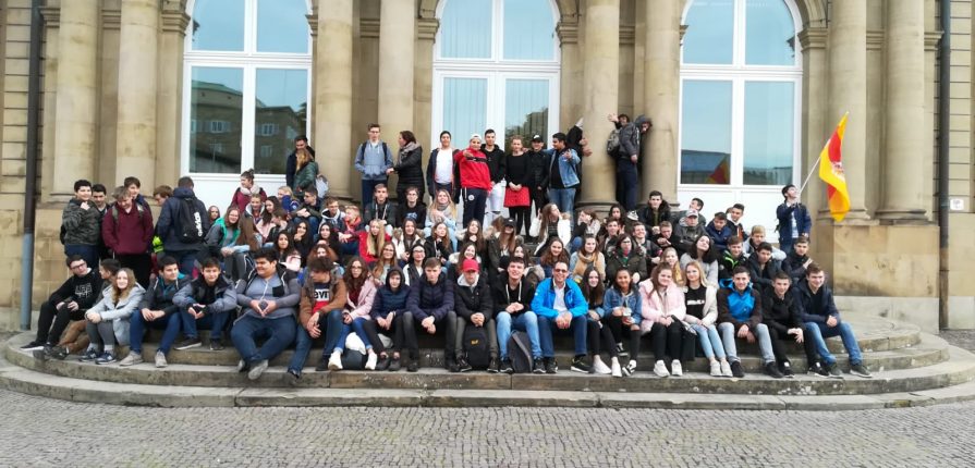 Am 6. November 2018 fuhr der Bus morgens um 7:30 Uhr von der Schule los. Sechs Klassen gingen mit nach Stuttgart: die R9a/c, R10b/d und die W9a/b. Die Fahrt dauerte zwei Stunden. Als wir angekommen waren, besichtigten wir die Stuttgarter Innenstadt. Zurück am Treffpunkt haben sich alle Schüler versammelt und wir haben ein Foto auf der Treppe vor dem Landtag