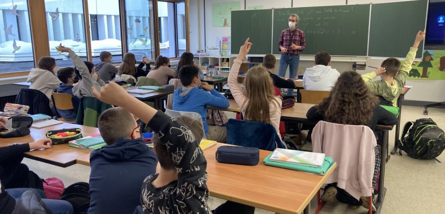 Dr. Stefan Kühnlein, Dozent für Mathematik am KIT in Karlsruhe, besuchte am Donnerstag, den 31.03.22 die beiden Profilklassen (Science Class). Im Unterricht konnten die Kinder der Science Class hautnah erleben, wie spannend die intensive Beschäftigung mit Mathematik ist. Die fünfte Klasse beschäftigte sich mit Primzahlen, wobei auch zwei bislang ungeklärte Fragen der höheren Mathematik für großes Interesse sorgten. In Klasse