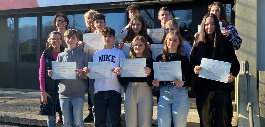 An der Realschule und Werkrealschule Friesenheim haben insgesamt 12 Schülerinnen und Schüler zum ersten Mal die Prüfung DELF A2 (Diplôme d’Études en Langue Française) erfolgreich abgelegt. Das weltweit anerkannte DELF ist ein französisches Sprachzertifikat, das ein Leben lang seine Gültigkeit behält. Nachgewiesen wurden hierbei die Fähigkeiten in den Bereichen Hör- und Leseverstehen sowie Schreiben und Sprechen. Eingangs haben alle Französischschüler