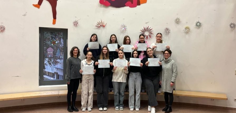 11 Schülerinnen wurde vor den Ferien das DELF-Diplom (Sprachdiplom des französischen Staates) Niveau A2 überreicht. Sie absolvierten eine mündliche und schriftliche Prüfung auf Französisch. Das Diplom ist lebenslang gültig. Herzlichen Glückwunsch!