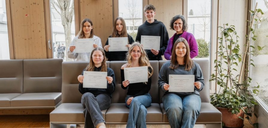 Schülerinnen und Schülern der 10. Klassen wurde vor den Ferien das DELF-Diplom (Sprachdiplom des französischen Staates) Niveau A2 überreicht. Sie absolvierten eine mündliche und schriftliche Prüfung auf Französisch. Das Diplom ist lebenslang gültig. Herzlichen Glückwunsch!