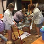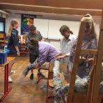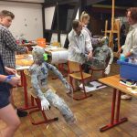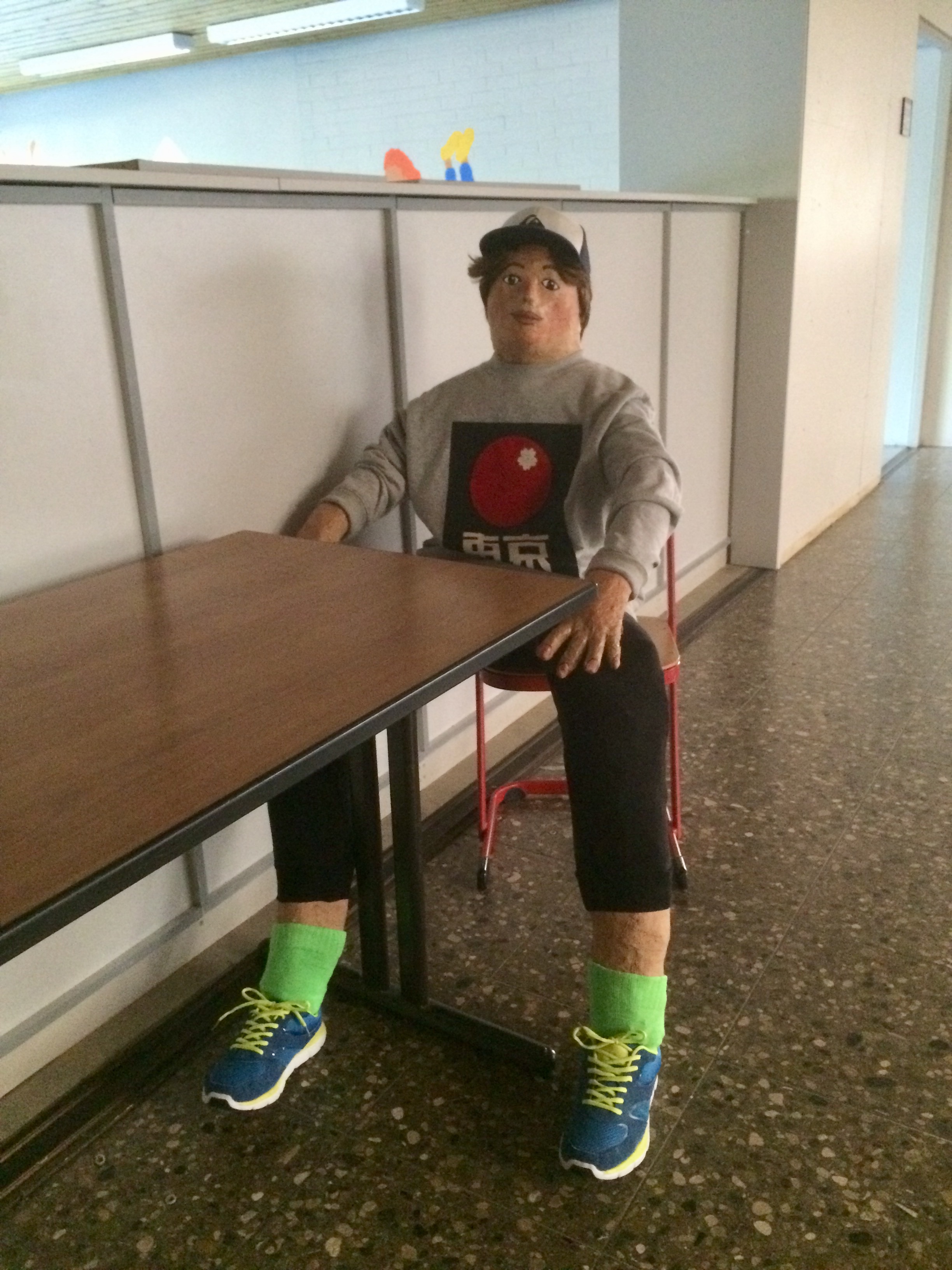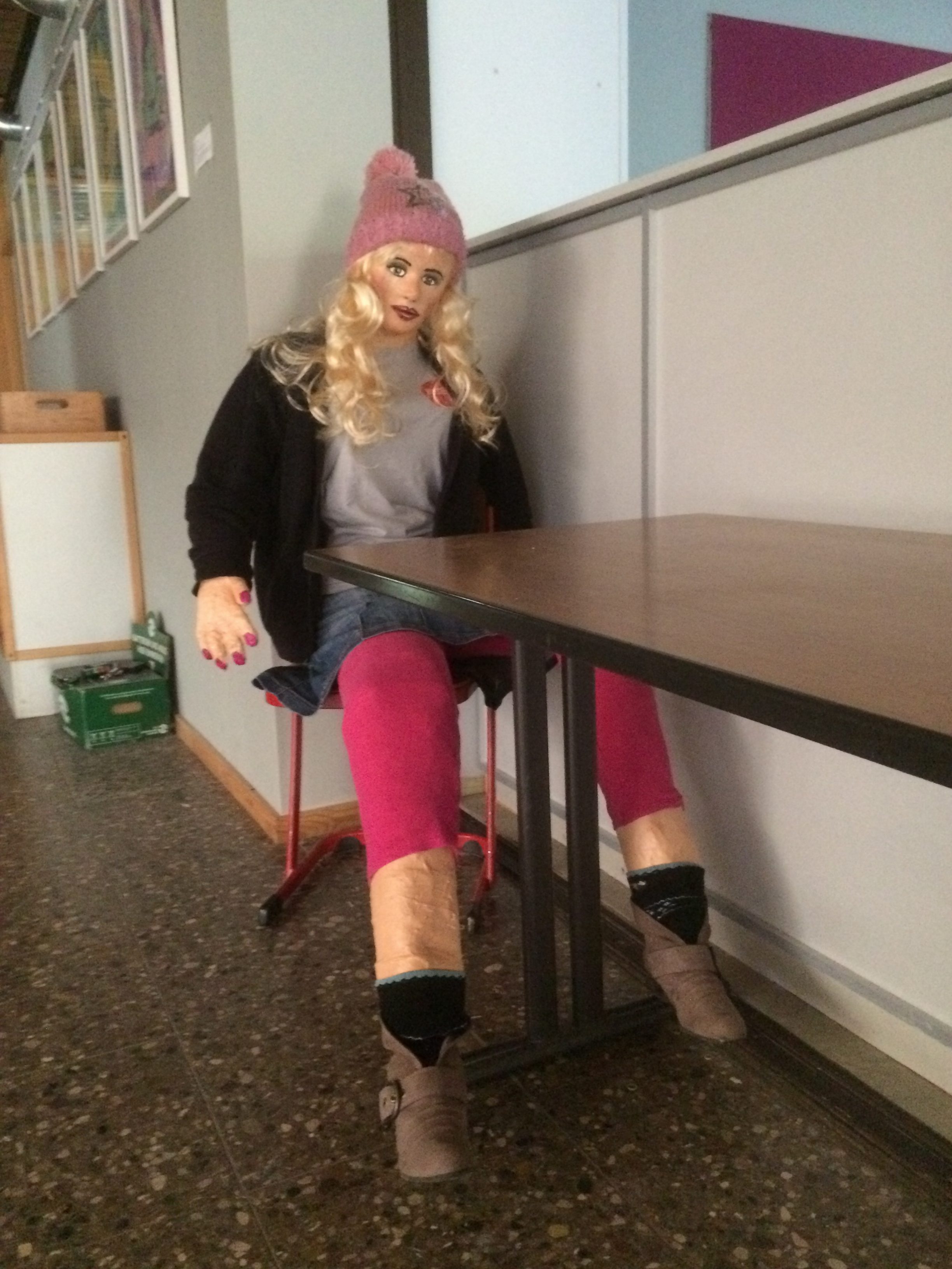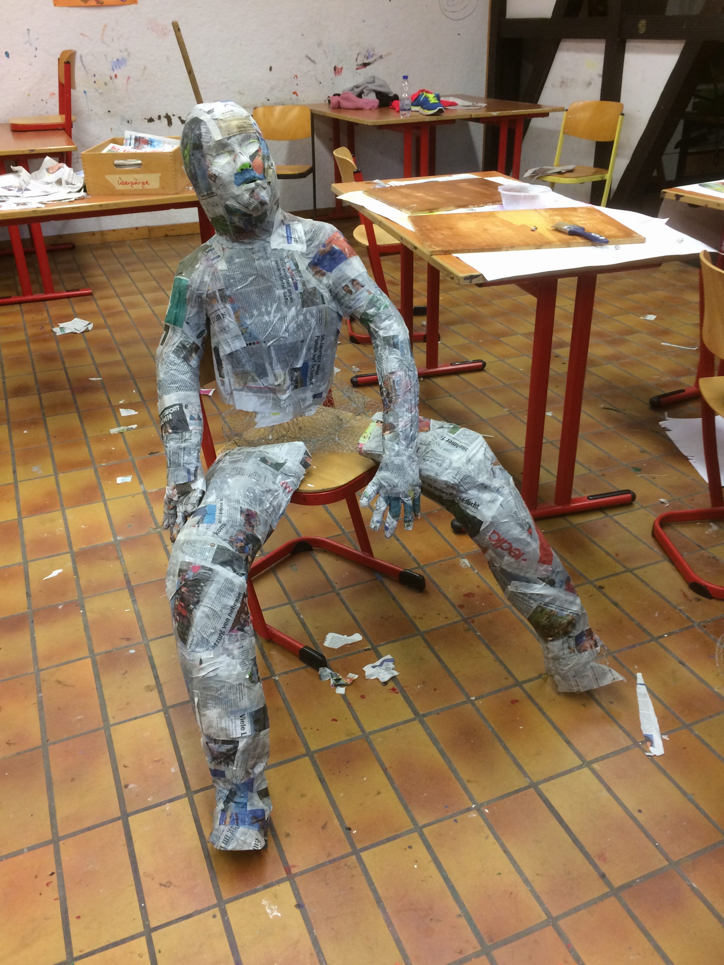 Regina Erb-Schalk wurde im Sommer 2019 in den wohl verdienten Ruhestand entlassen. In den letzten Schultagen hatte sie mit Schülern der 9. Klassen jedoch noch ein allerletztes Mal ein tolles Kunstprojekt durchgeführt. Die Schüler entwarfen aus Gitterdraht, Papier, Kleister, Gipsbinden und Farbe zwei lebensgroße Figuren, die sie Gundula und Anton tauften. Sie sitzen nun vor dem frisch renovierten Schüleraufenthaltsraum.