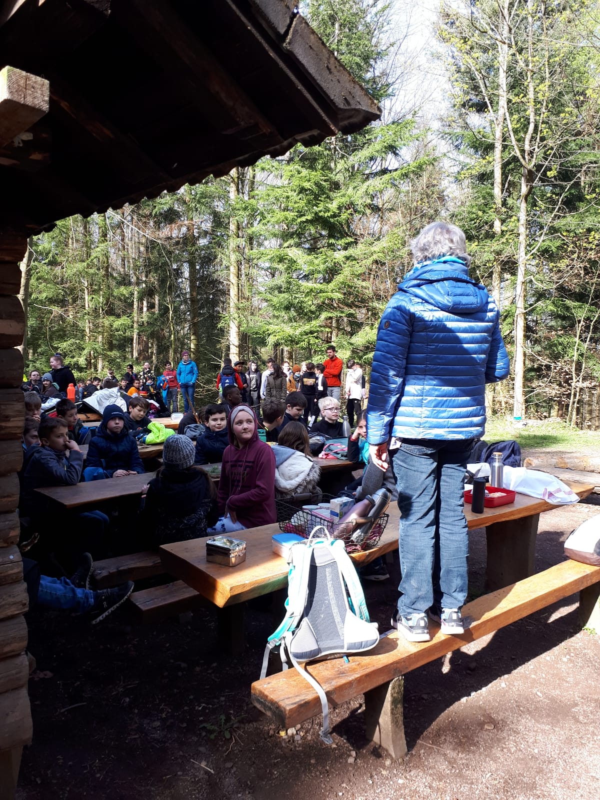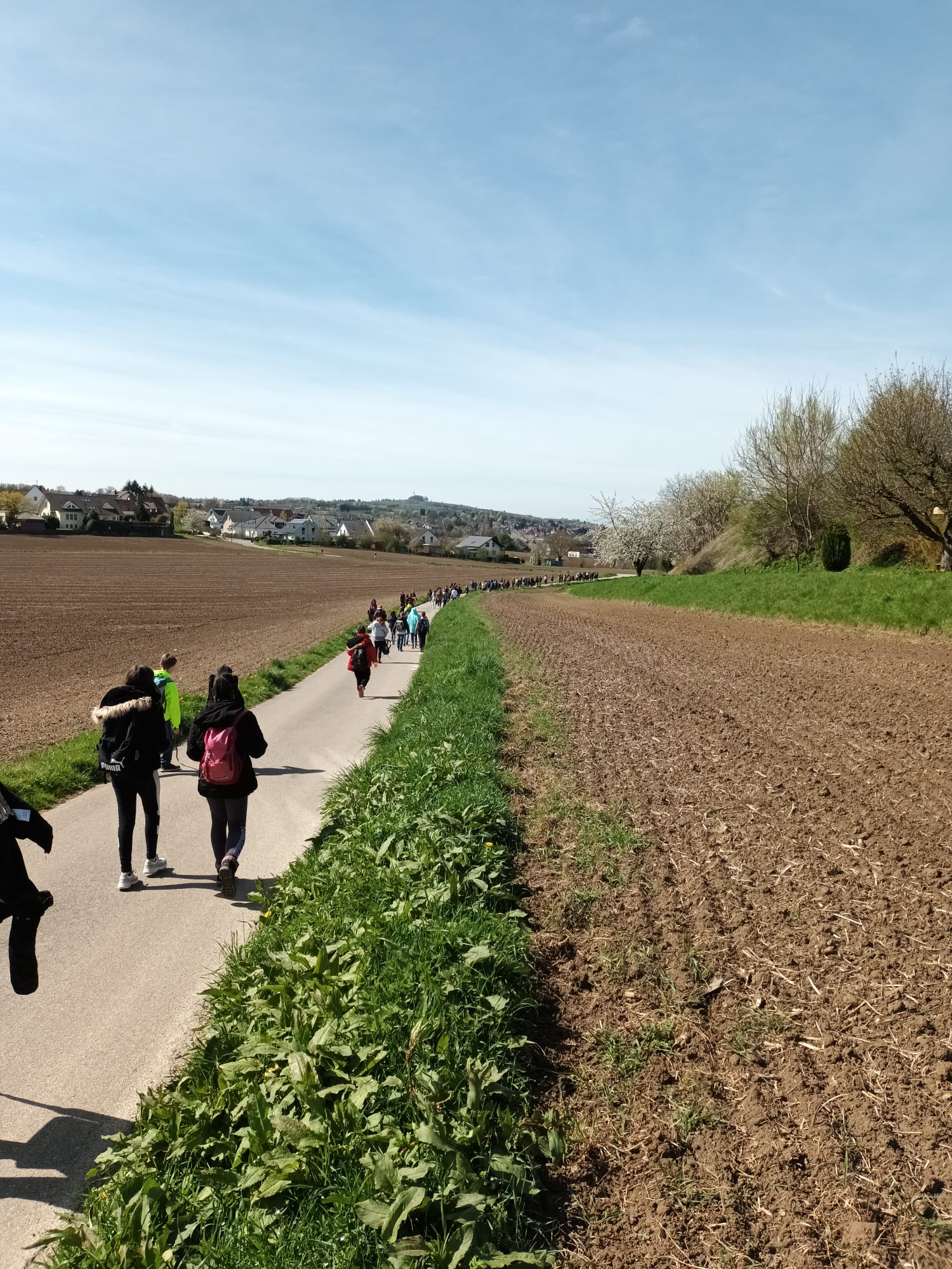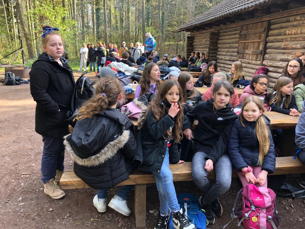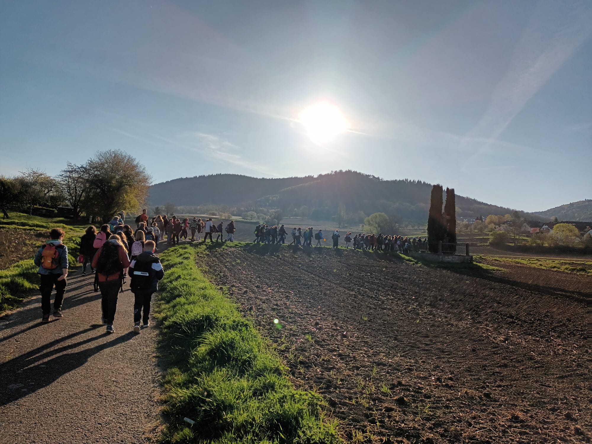 Der Sonne entgegen, begleitet von einem Gefühl der Freiheit und in fröhlicher Stimmung, wanderten unsere Fünftklässler am Montag vor Ostern zur Lendersbachhütte, wo ein Osterfeuer und frisch gebackenes Brot zum Teilen auf sie wartete. Unterwegs lösten sie Rätsel, hielten Ausschau nach Ostermotiven und sammelten Naturmaterialien, mit denen sie dann vor Ort ein Osterbild gestalteten. Nach einer kleinen Besinnung mit einem gemeinsamen „Vater unser“ und einem Segenslied hatte der „Osterhase“ noch was Süßes für sie versteckt. Ob wohl alle Süßigkeiten gefunden wurden? Die Kinder hatten auf jeden Fall viel Spaß beim Suchen und kehrten gut gelaunt zur Schule zurück.