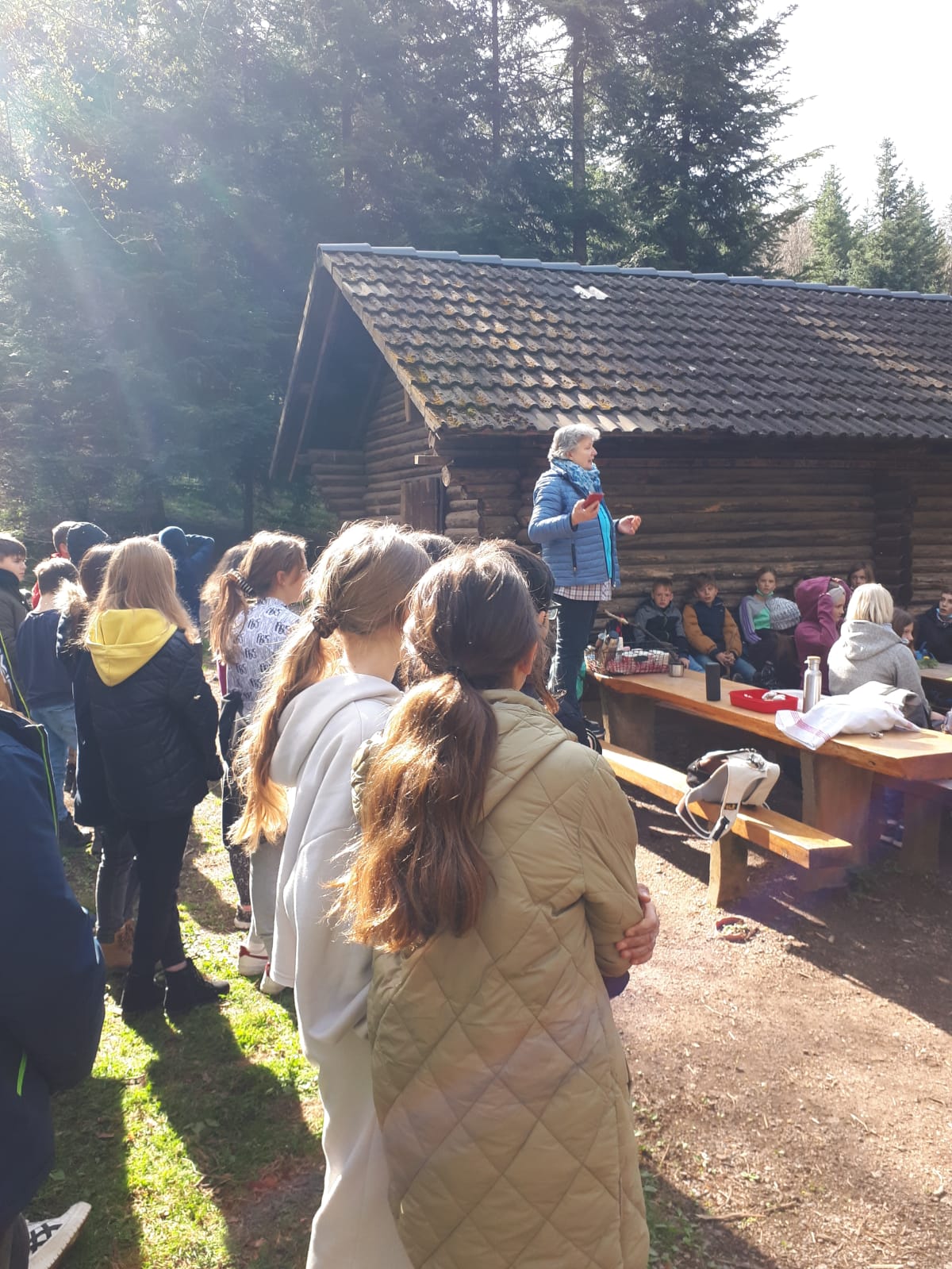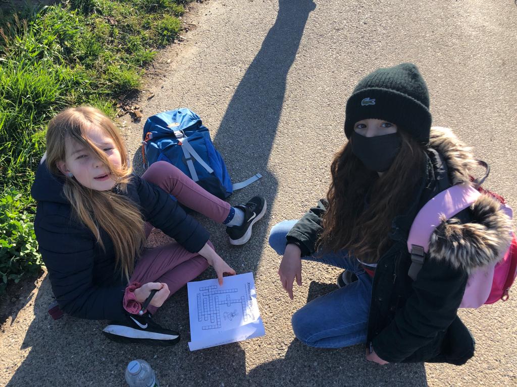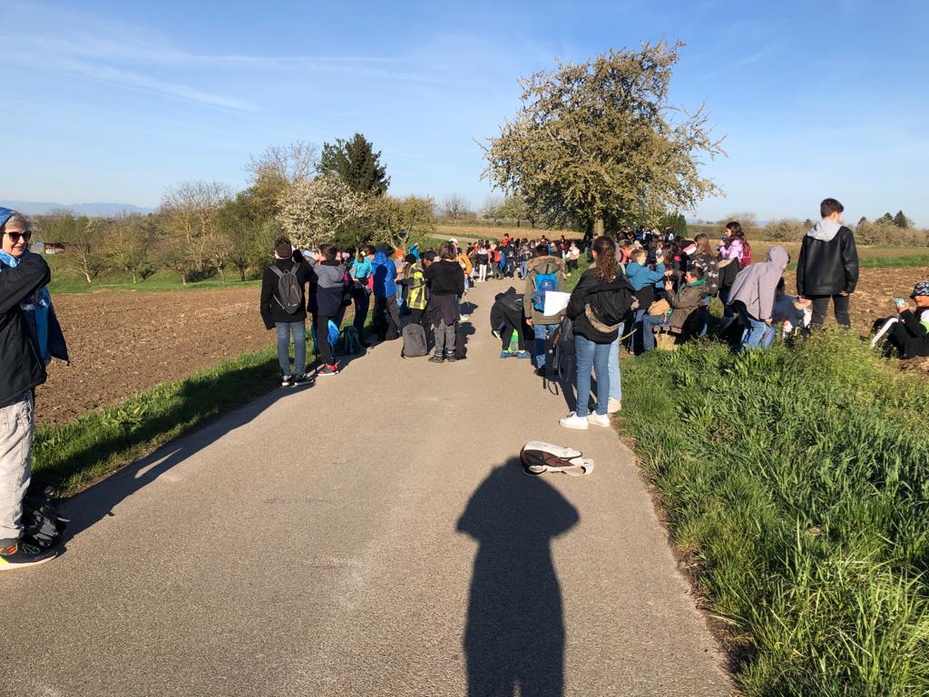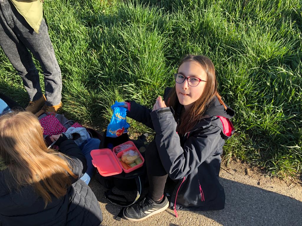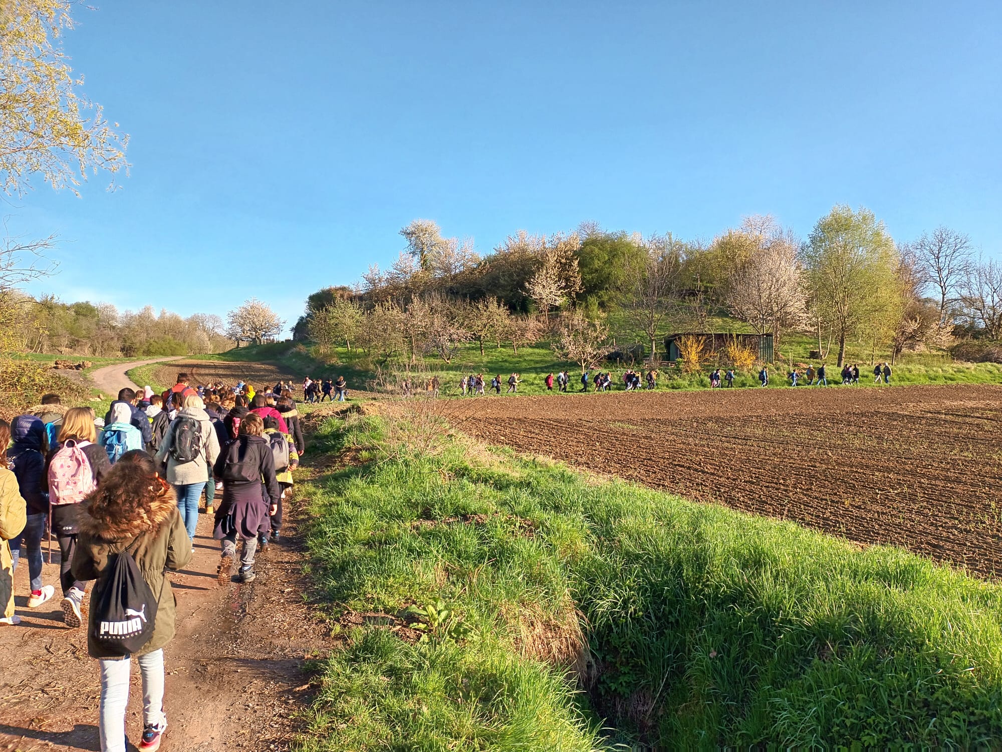 Der Sonne entgegen, begleitet von einem Gefühl der Freiheit und in fröhlicher Stimmung, wanderten unsere Fünftklässler am Montag vor Ostern zur Lendersbachhütte, wo ein Osterfeuer und frisch gebackenes Brot zum Teilen auf sie wartete. Unterwegs lösten sie Rätsel, hielten Ausschau nach Ostermotiven und sammelten Naturmaterialien, mit denen sie dann vor Ort ein Osterbild gestalteten. Nach einer kleinen Besinnung mit einem gemeinsamen „Vater unser“ und einem Segenslied hatte der „Osterhase“ noch was Süßes für sie versteckt. Ob wohl alle Süßigkeiten gefunden wurden? Die Kinder hatten auf jeden Fall viel Spaß beim Suchen und kehrten gut gelaunt zur Schule zurück.