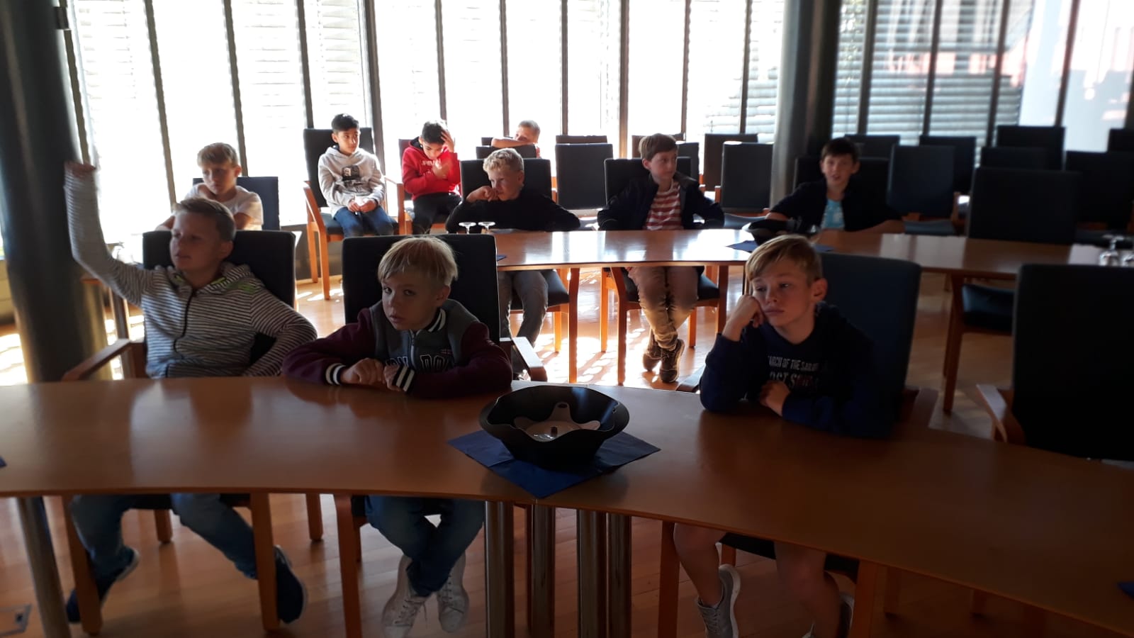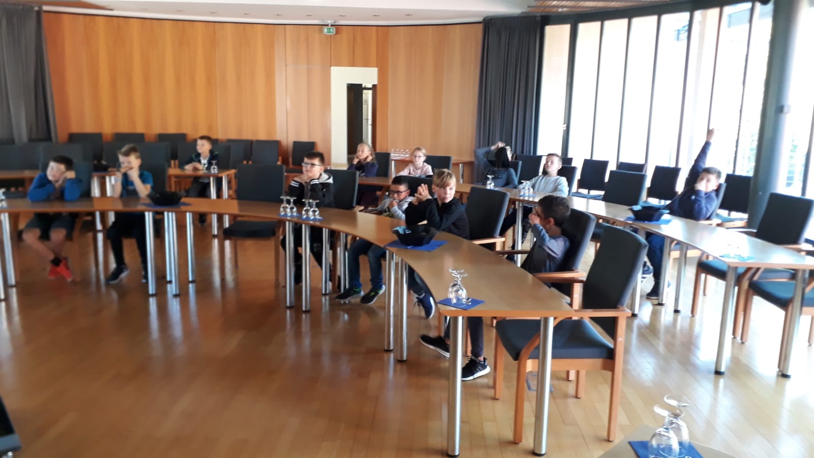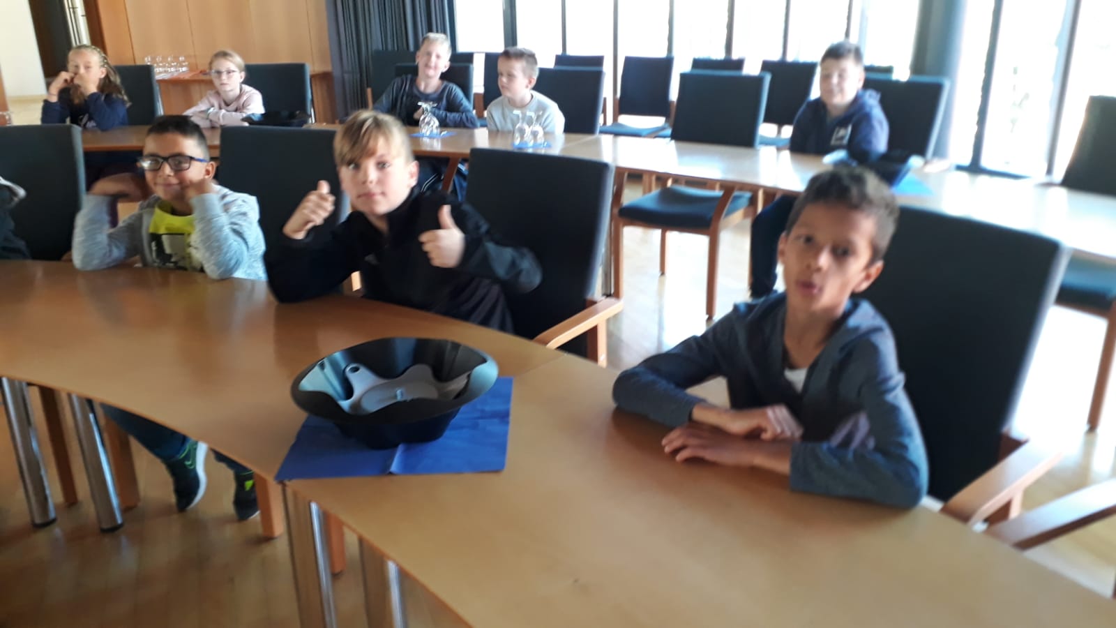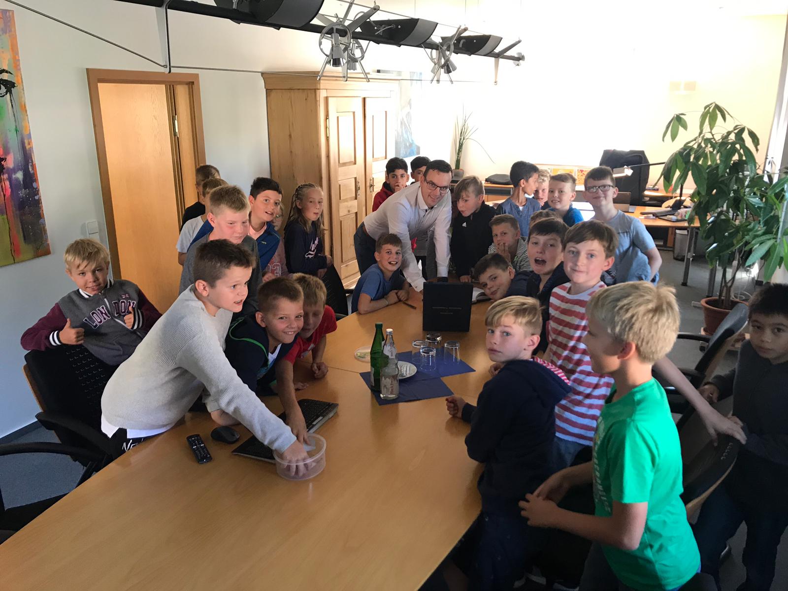 Die R5a war unterwegs in Friesenheim und durfte dabei im großen Sitzungssaal im Rathaus diskutieren, dem Bürgermeister Fragen stellen und sich sogar ins Buch eintragen.