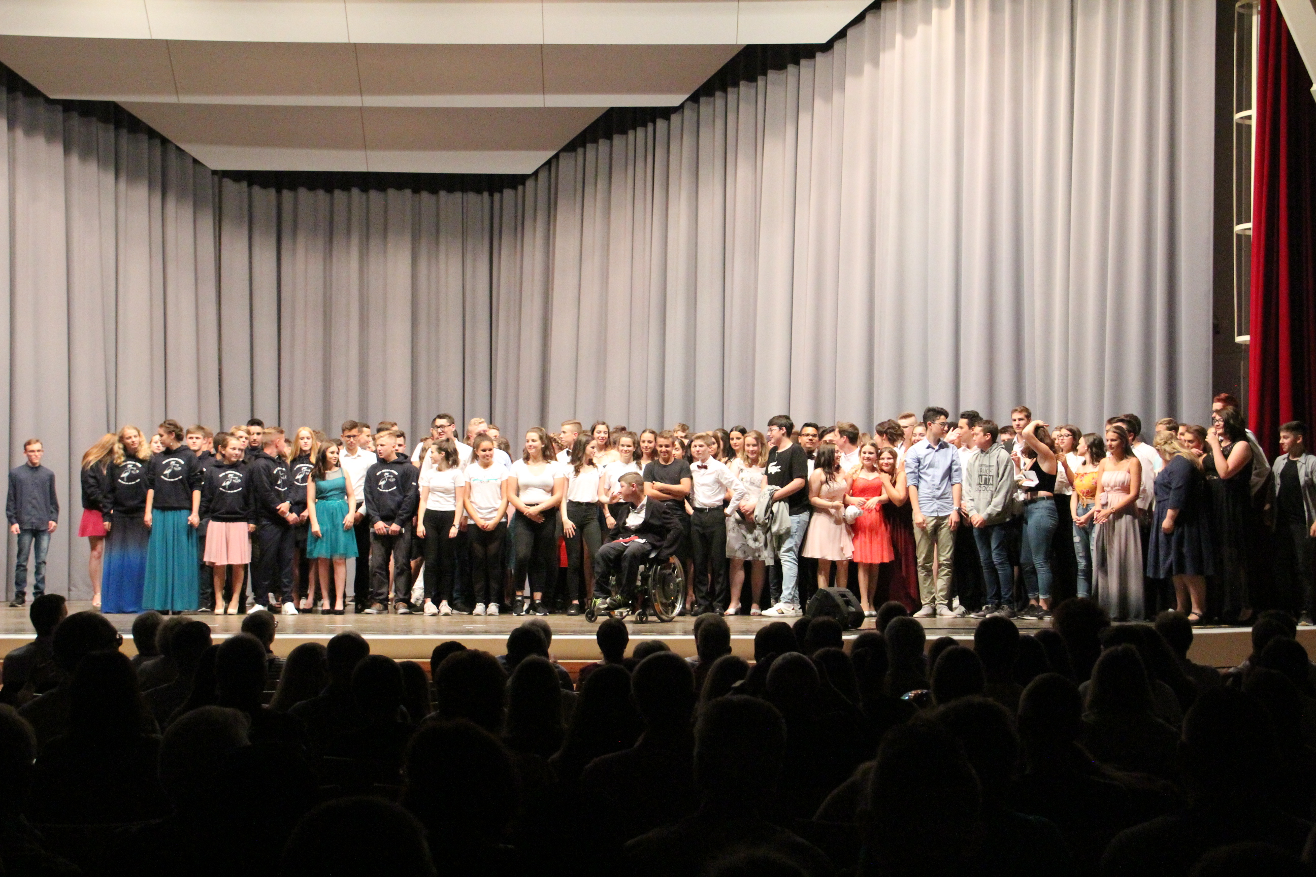Jedes Jahr im Juli werden alle Abschlussschüler unserer Verbundschule in einem festlichen Rahmen in der Sternenberghalle verabschiedet. Realschüler und Werkrealschüler stehen gemeinsam auf der Bühne und bekommen ihre Zeugnisse überreicht. Nach dem offiziellen Teil mit Zeugnisübergabe und Ehrungen für besondere Leistungen folgt ein buntes Programm, welches die Schüler zusammen mit ihren Klassenlehrern erstellen. Schüler, Eltern und Lehrer lassen danach den Abend bei einer Party im Club ‚Freiraum‘ in Offenburg ausklingen.